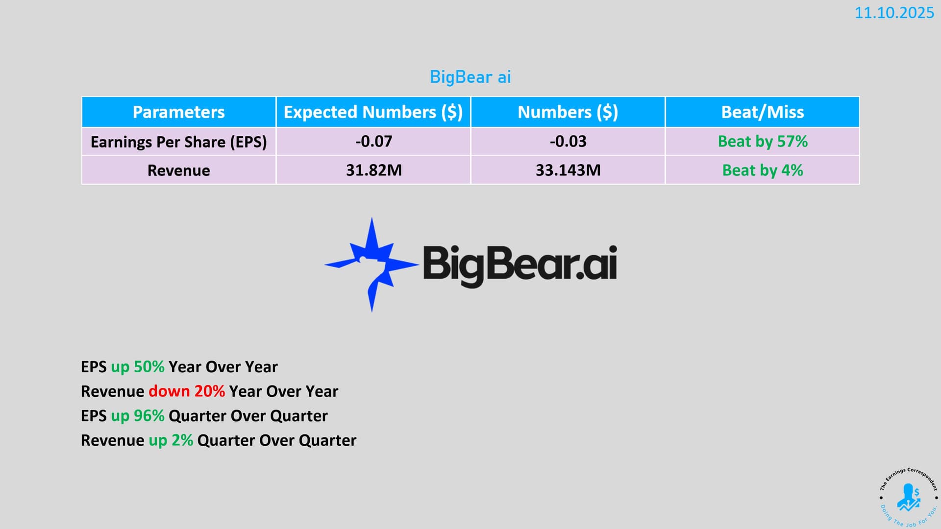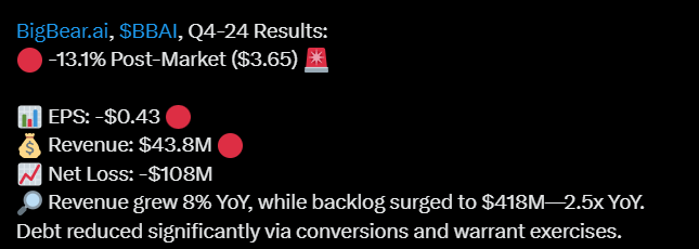 BigBear.ai:n liikevaihto laski, mutta tulos kääntyi tappiosta voitolle kustannussäästöjen ja joidenkin rahoituserien muutosten ansiosta (?). Oikein hyvin meni ja odotukset ylitettiin.