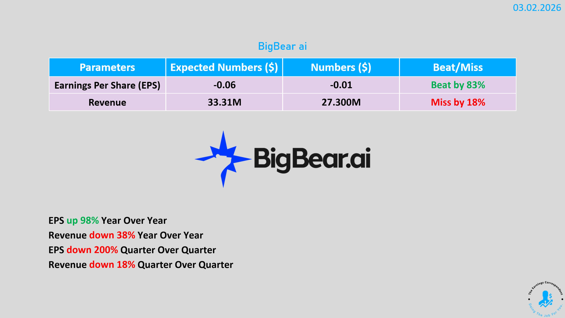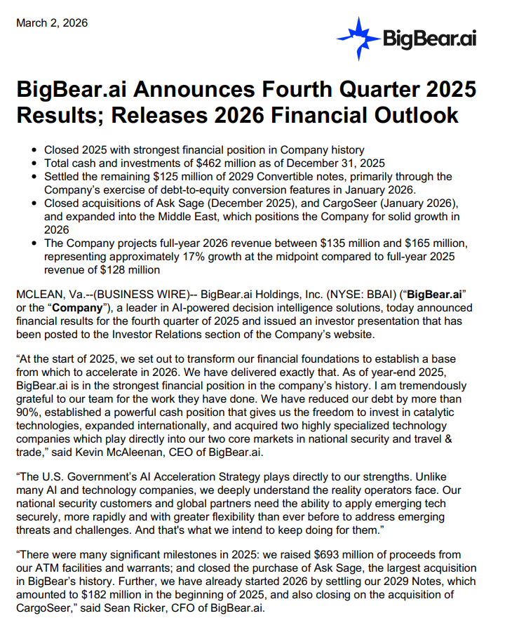 BigBear.ai’s revenue decreased, but earnings turned from loss to profit thanks to cost savings and changes in some financial items (?). It went very well and expectations were exceeded.