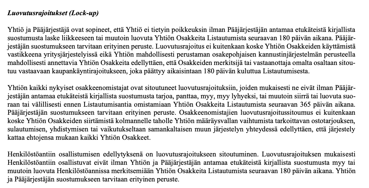 Olen tänään ollut yhteydessä Fineen, finanssivalvontaan ja Helsingin pörssiin. Fine ja Finanssivalvonta eivät asiaan sanoneet juuta tai jaata ja kertoivat, että asia on täysin Helsingin pörssin heiniä, koska he ovat esitteet, ehdot ja yhtiön listautumisen viime kädessä hyväksyneet.