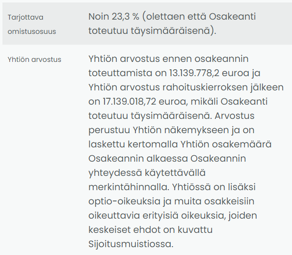 Jäi ilmeisesti vähän muiden IPO:jen jalkoihin tämä, koska ei tullut ilmoitusta ylimerkinnästä tai annin keskeyttämisestä.