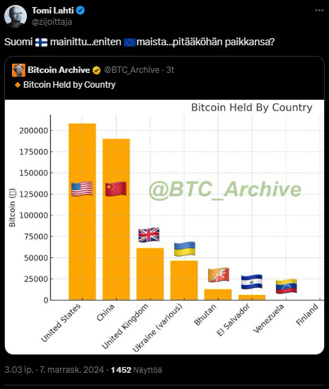 mistä tietenkin palstan Bitcoinista pitävät ihmiset ovat varmasti eri mieltä, ja eri mieltä saa olla. Tuo artikkeli on nyt jo muutaman päivän vanha. Itse törmäsin siihen ensimmäisen kerran kun Coinmotionin toimari postasi sen linkkarissa, mutta en ajatellut sen pidemmälle. Nyt kun huomasin sen täällä tänään, koitin katsoa netistä millaista keskustelua se on herättänyt, ainoat tulokset haulle on artikkeli itse, erinäiset kryptoaiheisiin uutisiin erikoitstuneer verkkosivut, ja yksi osuma Forbesiin, mutta sekin on contributor artikkeli (glorifioitu blogi). Olen huomannut tässä, ja aikaisemminkin, että ainoat ihmiset joilla on mitään kiinnostusta Bitcoinia kohtaan on jo valmiiksi kelkassa olevat ja keskuspankkien econ nörtit. Olen hieman huolissani siitä, että okein mitään julkista keskustelua aiheesta ei ole, vaikka on syytä useamman artikkelin ppohjalta epäillä, että Bitcoin positiivinen skenaario vaikuttaa negatiivisesti kansaan riippumatta siitä haluaako henkilökohtaisesti osallistua Bitcoinin käyttöön vaihdannassa tai pseudo-kultana.