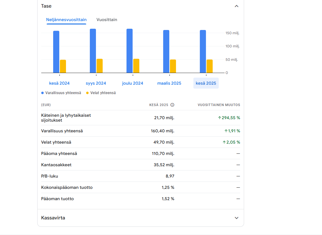 Google Financen sivuilta kuvakaappaus taseesta: