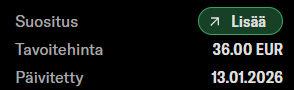 Juha antoi Lisää-suosituksen ja tavoitehinnan 36 eur. Innolla odotan analyysia, joka varmaan tässä aamulla tulee luettavaksi.