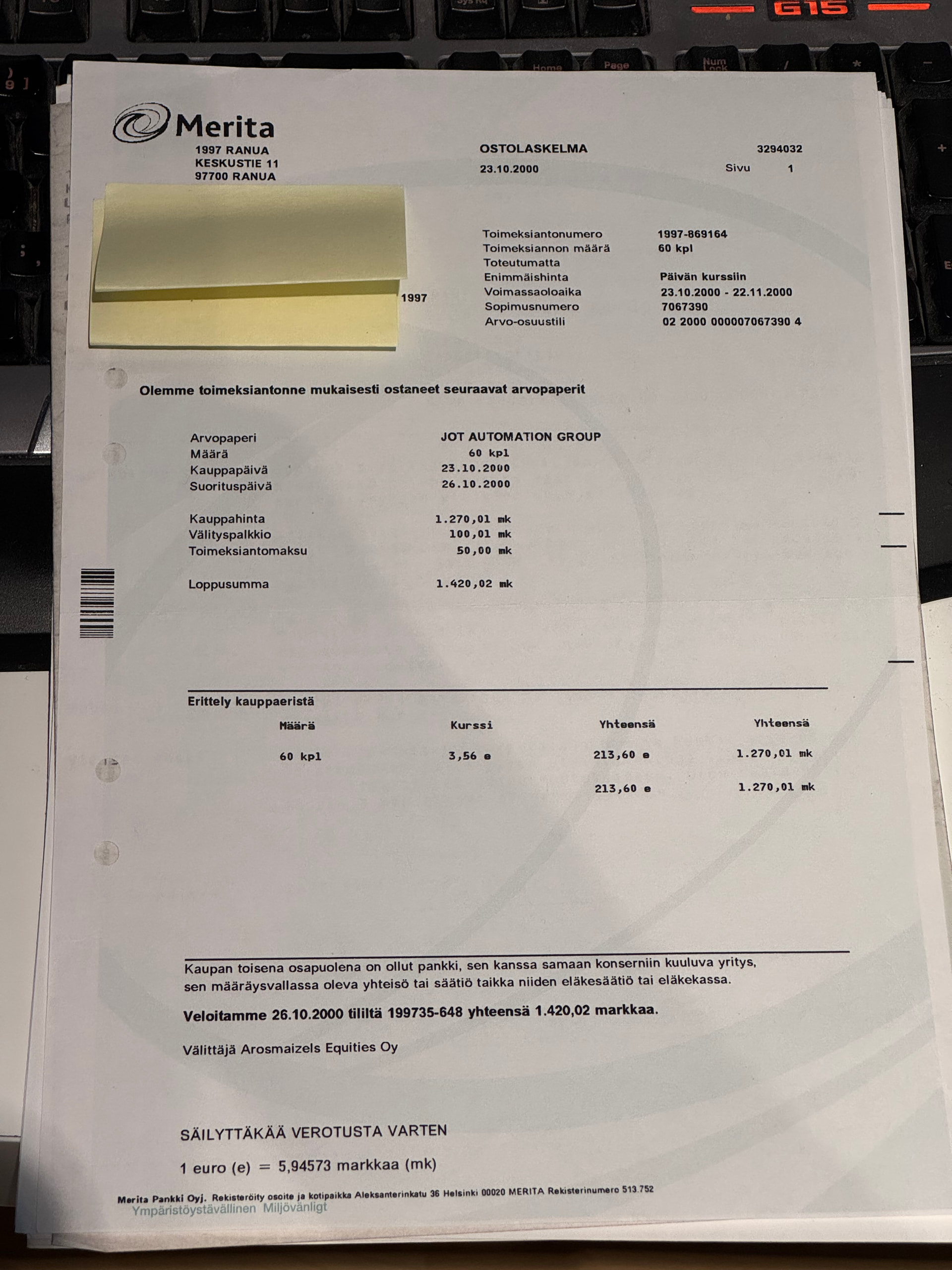 ps. Ei ole AOT numerokaan vuosien mittaan muuttunut. Toki sijoitustoiminta on siirtynyt “Meritasta” Nordnettiin