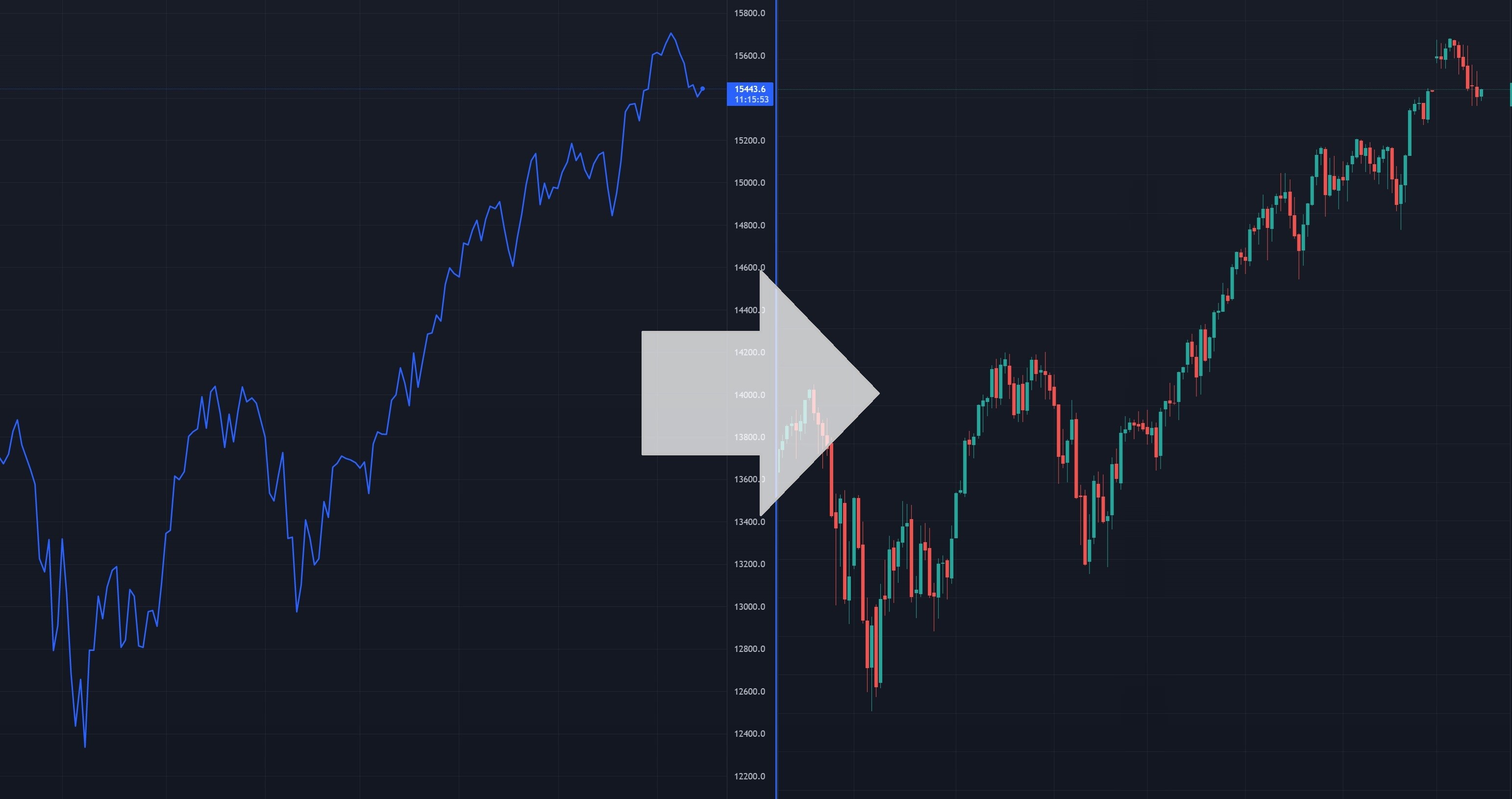 Aivan ensimmäiseksi teknisen analyysin opiskelussa pitää luopua viivagraafista ja siirtyä käyttämään kynttilägraafia (Japanilainen kynttilägraafi - Japanese Candlestick Chart), jota käyttämällä saadaan paljon enemmän tietoa osakekurssin liikkeistä.