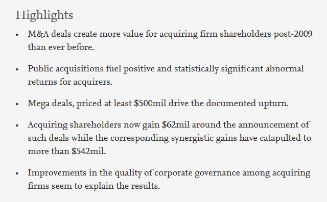 Alla ihan mielenkiintoinen Googlella löytynyt juttu. Mainitaan nimenomaan, että paras keino onnistua yritysjärjestelyissä on tehdä niitä jatkuvasti, kuten vaikkapa Boreo. Myös pienemmät diilit mainittu.
