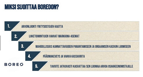 ”Kyseessä ei ole skaalautuva teknologiayhtiö, mutta Boreossa ei minun mielestäni ole mitään tylsää. Heillä on erittäin mielenkiintoinen strategia ja valtavasti arvonluontipotentiaalia.”