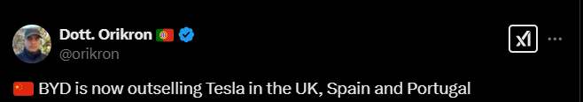 Tämä tviitti osoittaa myös hienosti, miten BYD kasvaa. Tuntuu vielä vahvasti kaiken lukemani perusteella, että BYD ei ole läheskään kaikkea ottanut irti kasvupotentiaalistaan.
