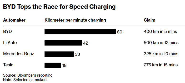 (Bloomberg) – Chinese automaker BYD Co. is turning heads with claims that it’s developed an electric-vehicle platform it says will enable drivers to charge an…
