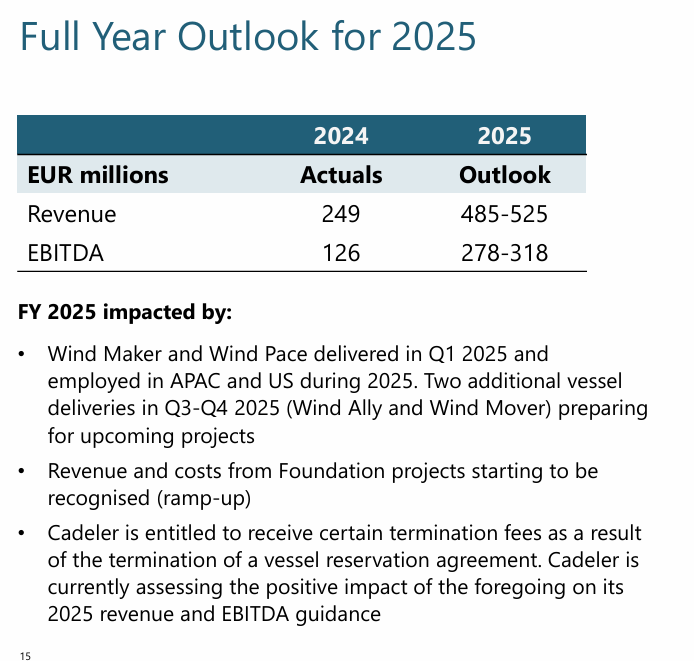 • Teki päätöksen ostaa vielä yhden uuden aluksen Kiinasta, jonka pitäisi yhtiön mukaan vaikuttaa positiivisesti vielä tämän vuoden tulokseen. alus toimitetaan Cadelerille Q3/25.