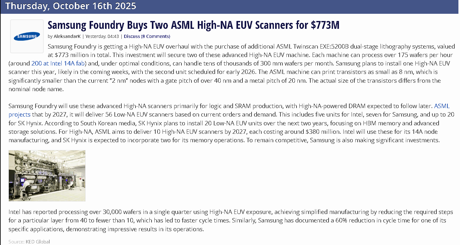 And Intel is buying 2 more High-NA-EUV machines from ASML.