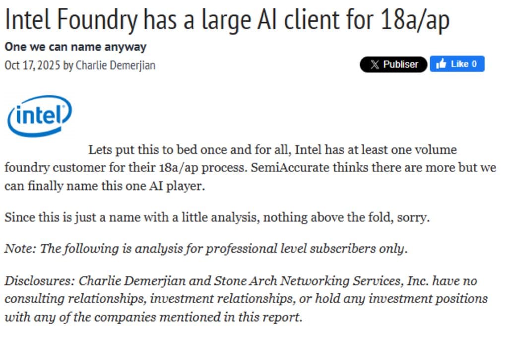 Market chatter about Intel’s 1.8nm customer. This would then logically fall into the High NA EUV category