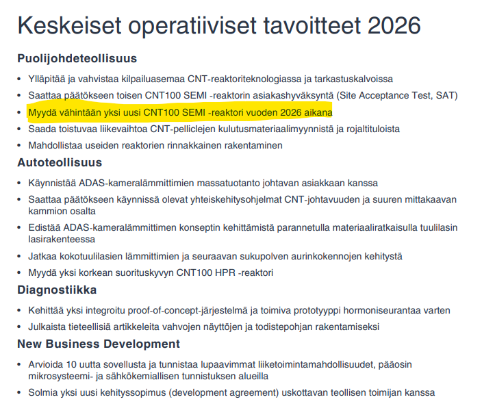 At the same time, the customer approval process (SAT) for the second CNT100 SEMI reactor, delivered to a leading global semiconductor player in December 2024, is ongoing, and the schedule is partly affected by the customer’s own progress.