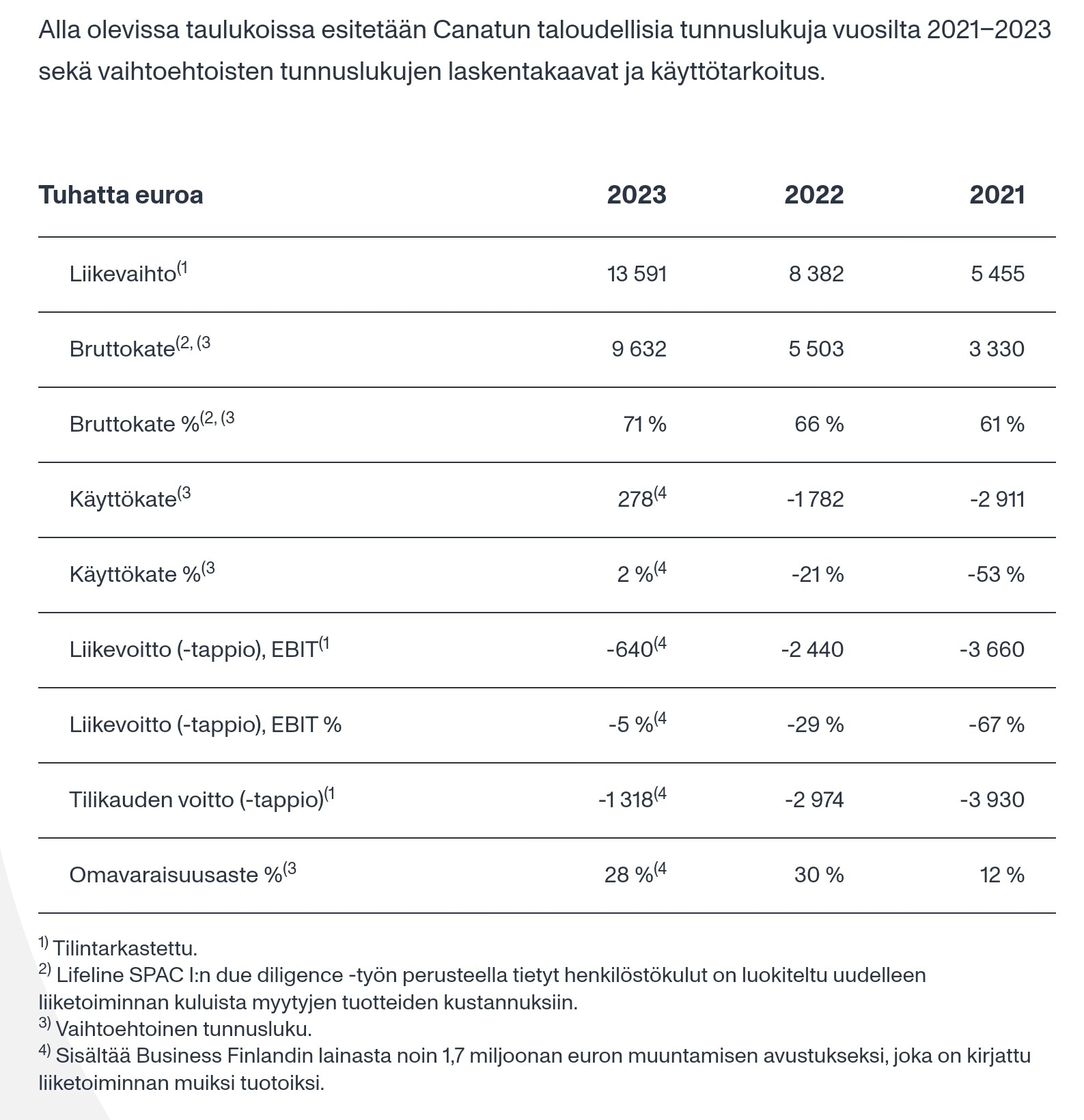 Canatun koko vuoden 2024 liikevaihdon ennustetaan olevan 20-25 miljoonaa euroa.