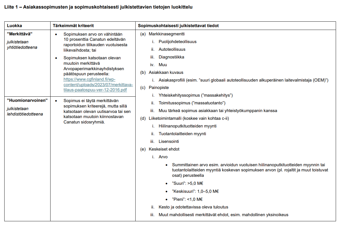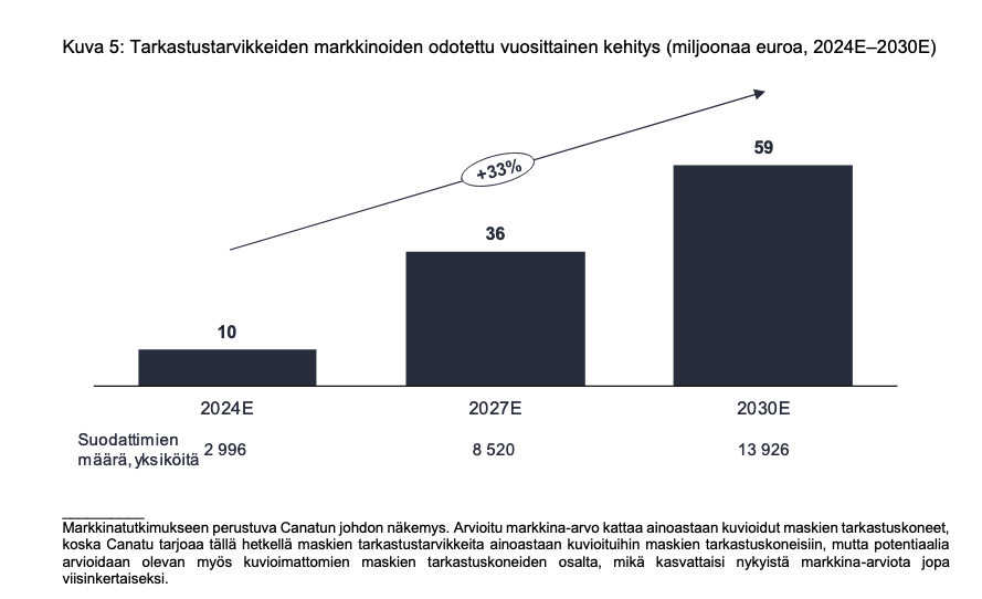 Canatun pitkän aikavälin taloudelliset tavoitteet ovat yli 100 miljoonan euron vuotuinen liikevaihto ja yli 30 prosentin oikaistu1) liikevoittomarginaali vuonna 2027.