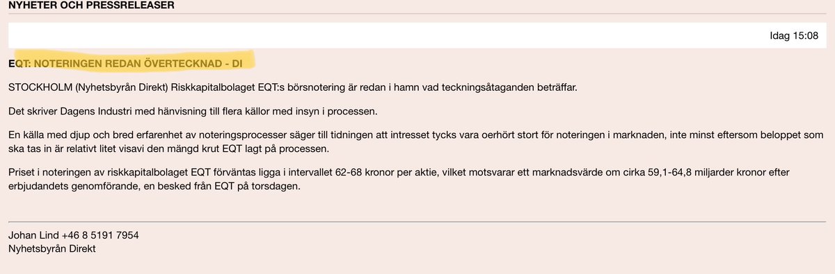 Harmillista, että EQT:n antiin ei näin suomalaisena voinut osallistua. Capmanin rinnalle sopiva lisä salkkuun. No, ensi viikkoa ja kaupankäynnin alkua odotellessa.