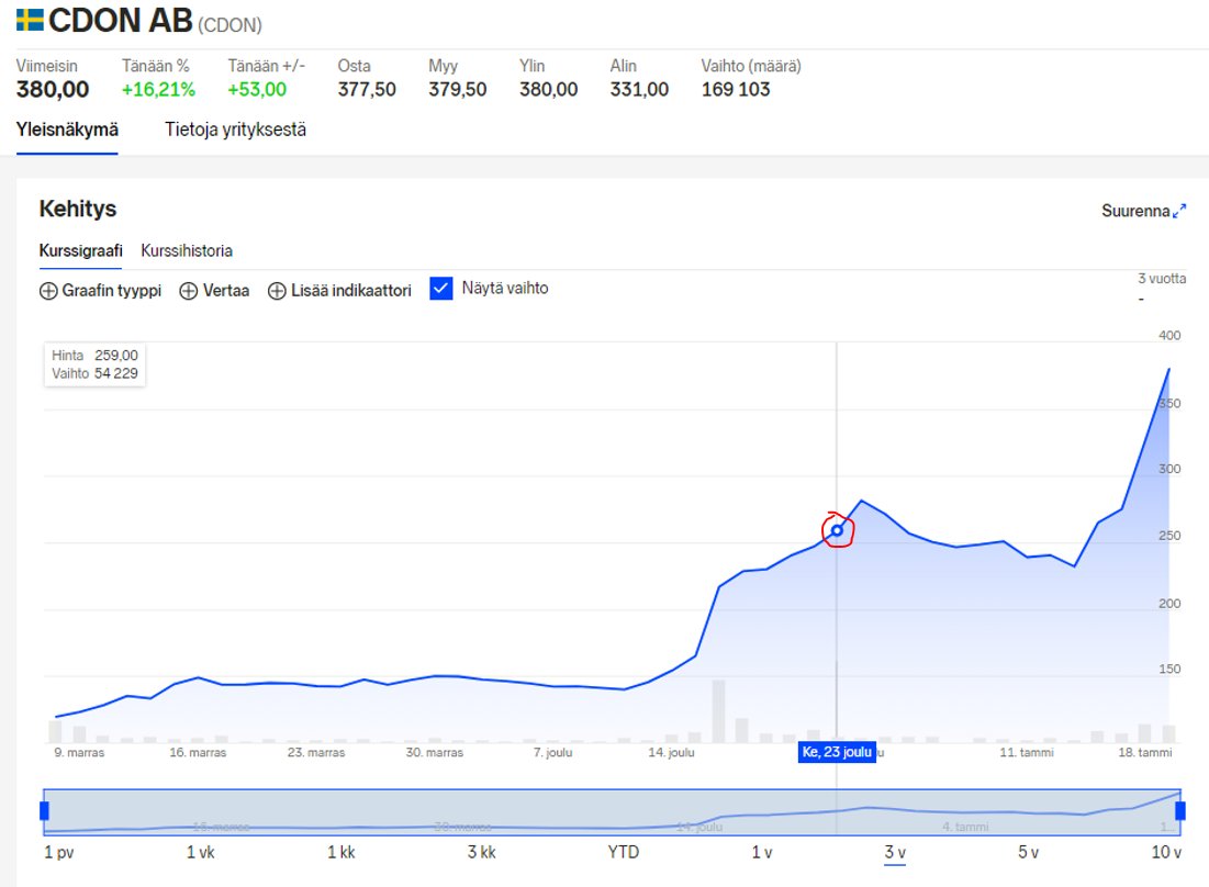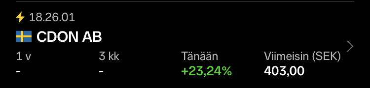 Ketju on muuten täynnä niin masentavaa palautetta, että sallittakoon väliin pieni ruiskahdus ATH-hehkutusta @Masse kunniaksi. Ollaan kuitenkin noustu yli 40 SEK tänään. Ainakin omistajia hymyilyttää, jos ei ketään muita ![]()