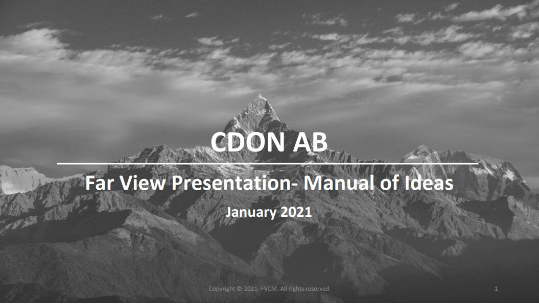 Kannattaa toki muistaa että Marketplacen kasvu oli yli 60% 2019, siis ennen koronabuustia. Lisäksi uskon että ecommerce penetraatio jatkaa nopeampaa kasvua kuin ennen Covidia koska monet toimijat ovat tiedostaneet verkkokaupan tärkeyden. CDON Marketplace GMV SEK 5bn täysin mahdollinen jo ensi vuonna. Odotan CDONilta jatkossa lisää mittareita joita voi seurata, esim GMV per merchant jne. Kun näistä saa lisää tietoa niin ymmärtää myös paremmin platan ”terveyden”. Deep value average quality keissi re-reittaa ensin ja ehkä jos mittarit näyttävät hyvältä re-reittauksen jälkeen niin firmaa voidaan alkaa hinnoitella korkeamman laadun keissinä. Odotan innolla ensimmäistä raporttia sitten IPOn (helmikuun alku).