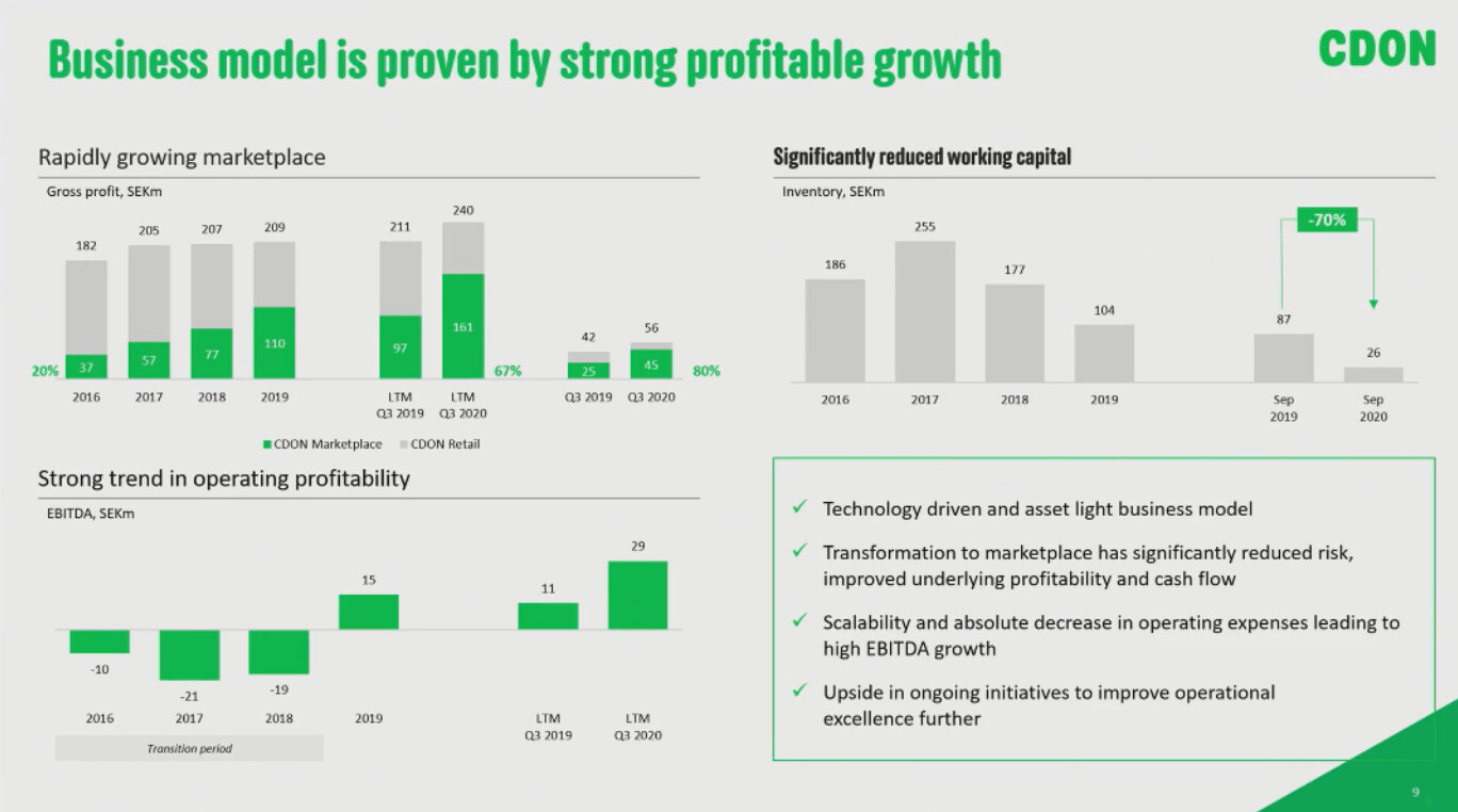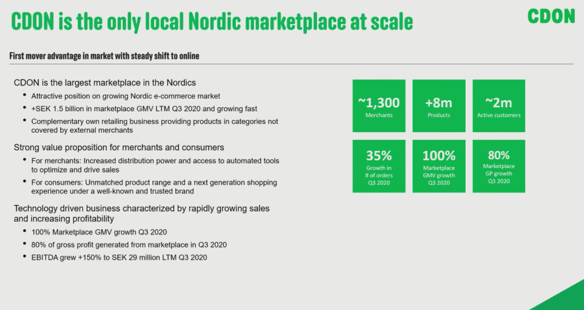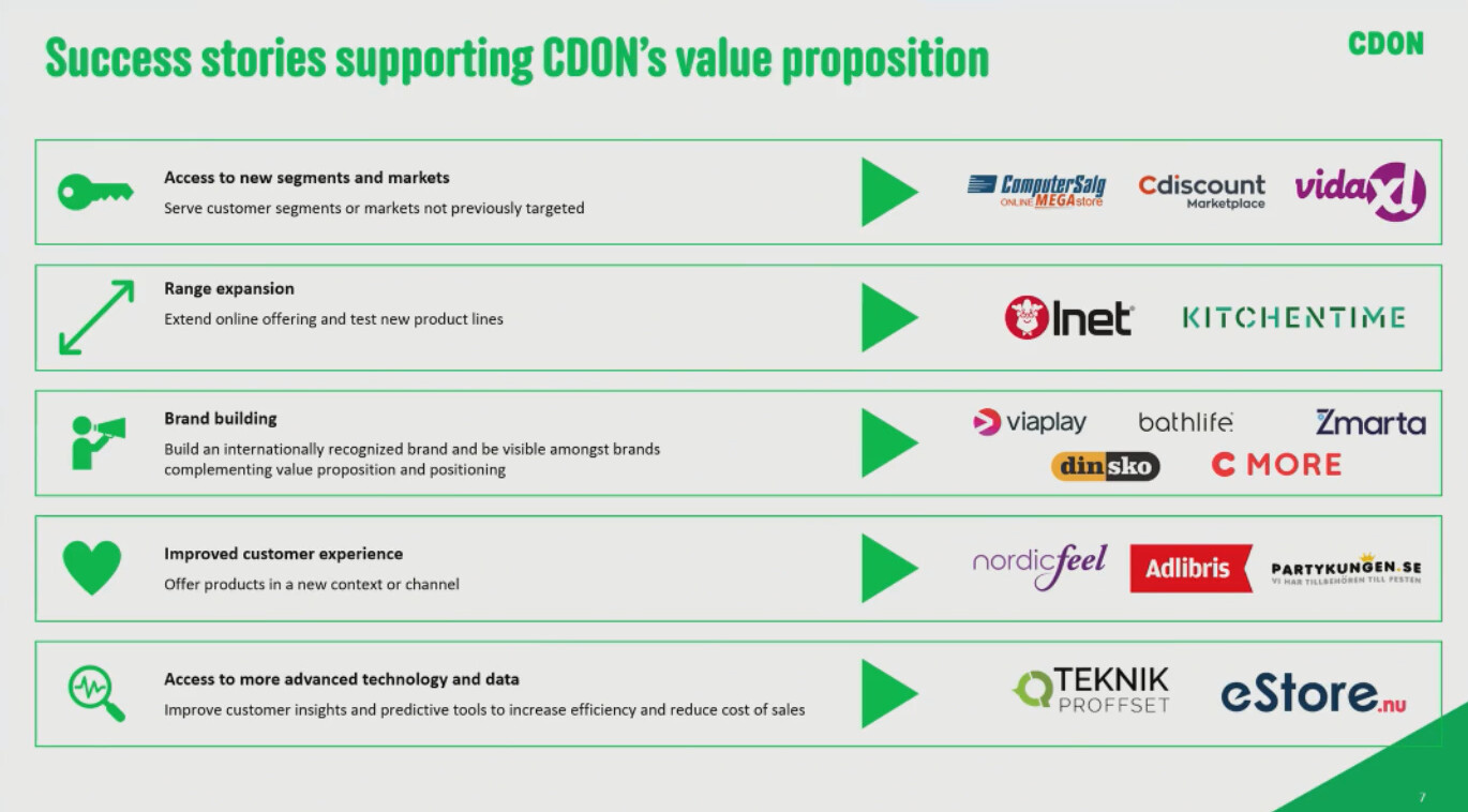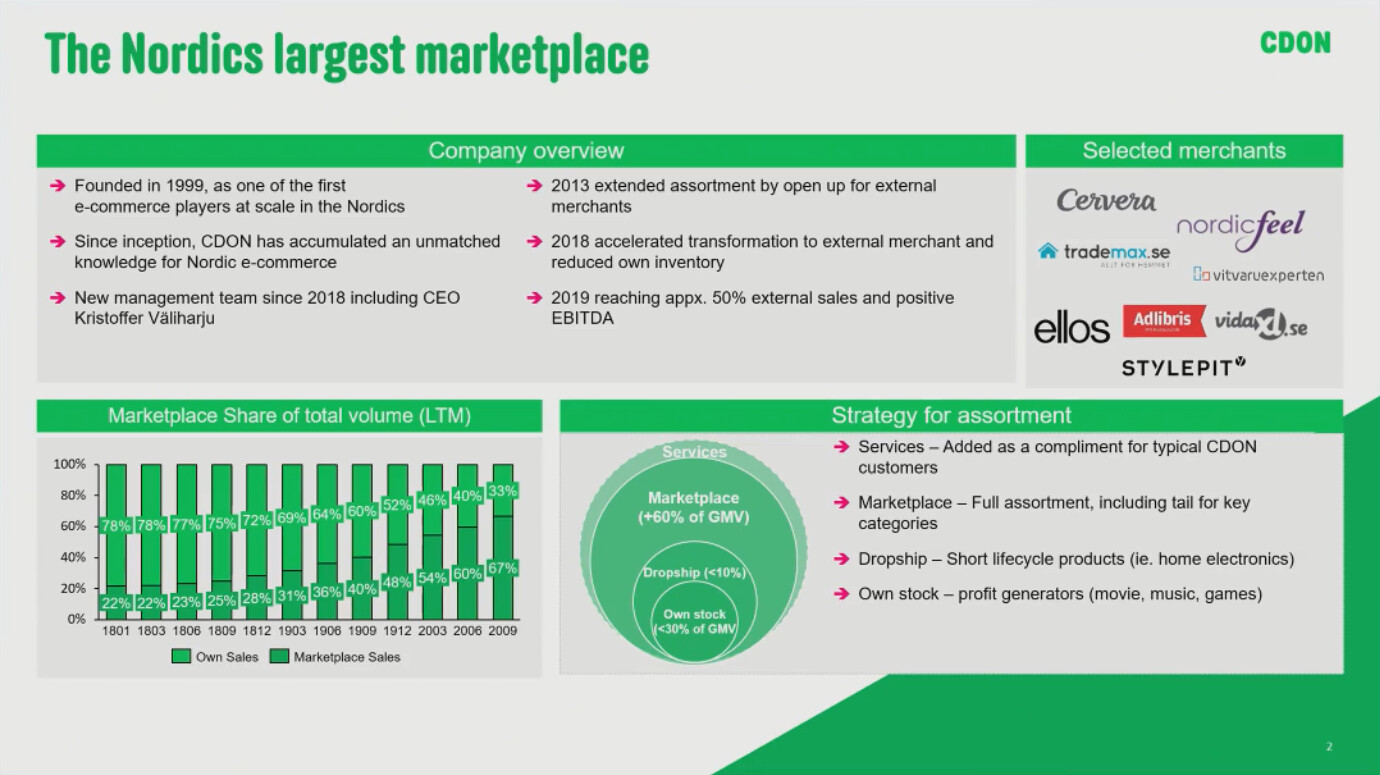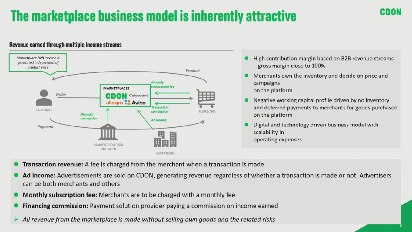 My own familiarization is still in progress, but this is a company that has undergone renewal in recent years. It has shifted from retail sales towards a marketplace business, which is capital-light, highly scalable, and high margins are part of the game. Can it perhaps be remotely called a mini-Amazon? In the background, a quite cleverly developed platform called “CDON connect” seems to be running the marketplace. So, through digitalization… personally, new attractive platform businesses usually cause me a huge erec… reaction