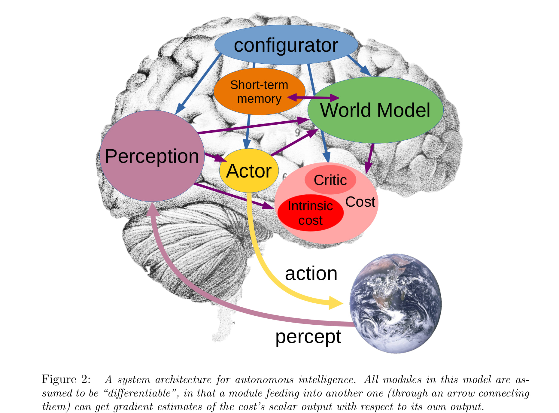 I wouldn’t necessarily make the same claim, because I believe I have a very biological view of how the human brain functions. However, the human brain is so many orders of magnitude more complex and versatile than current large language models that I don’t think the comparison is appropriate. Here is an example from one of LeCun’s old papers on what the architecture of an autonomous AI might look like: