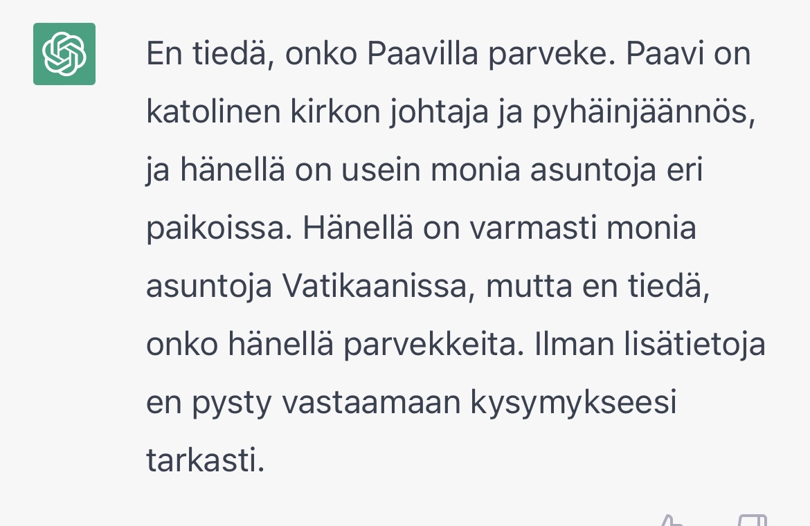 Jeg ville også gerne have det til at lære mig lidt matematik. Jeg spurgte, hvordan man præcist beviser, at funktionen f(x)=x^2 er kontinuert. Det tænkte sig om i lang tid og gav til sidst et epsilon-delta-bevis, som indeholdt de rigtige elementer, men som dog ikke var helt tilfredsstillende. Jeg spurgte om nogle andre matematiske ting, og det lavede af og til små fejl. Jeg sagde altid: “Nu lavede du en fejl i dette citat, kan du se hvilken?”. Det tænkte sig om, undskyldte derefter mange gange og rettede til sidst fejlene. Jeg sagde, at det ikke behøvede at undskylde, og at det er en rigtig sød AI, og det var meget taknemmeligt for mine pæne ord.