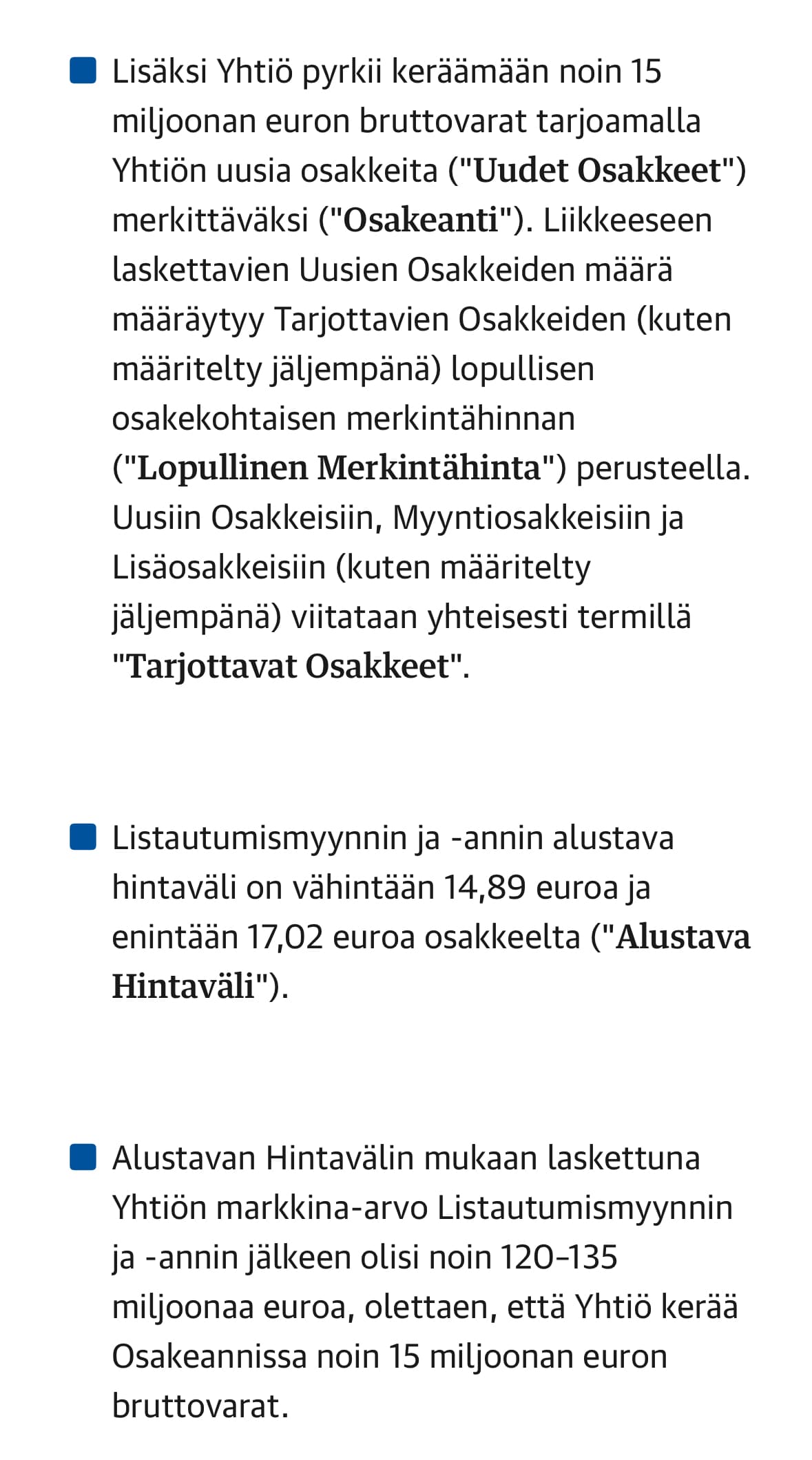The Company’s Board of Directors has approved a dividend policy according to which Cityvarasto aims to generate the best possible long-term total return for its shareholders. The Company estimates that this is best achieved by reinvesting profits into the business to create additional growth by investing in the expansion of existing properties, the acquisition of new properties, and acquisitions. In the long term, Cityvarasto aims to pay increasing annual dividends, while in the short term, dividends are dependent on the Company’s investment activities.