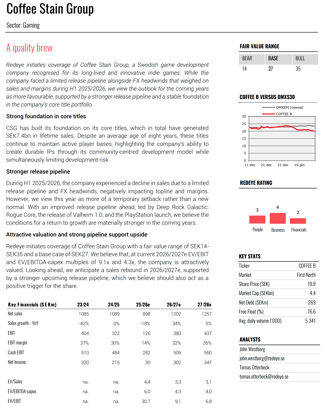Coffee Stain Group - Tillväxt och kassaflöde från spelbranschen?