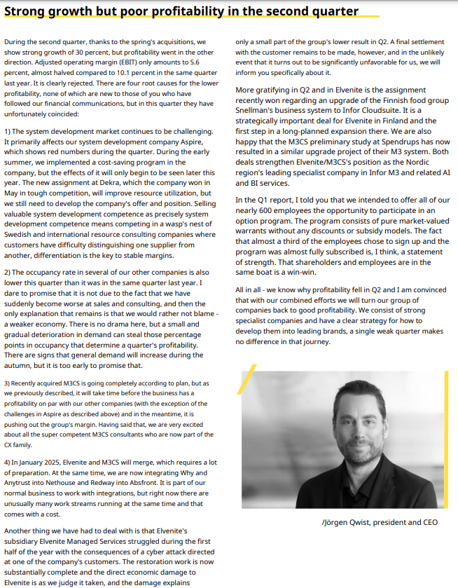 Yhtiö kommunikoi hyvin ja myös alustavan arvioni mukaan melko realistisesti. Disclaimerina, että yhtiö raportoi vain ruotsiksi ja oma ruotsin kielen taito on hyvin puutteellinen. Onneksi ChatGPT auttaa.