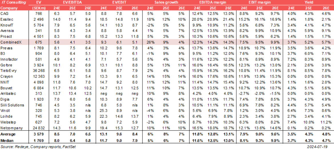 CombinedX on keväällä 2022 listautunut 9 itsenäisestä IT-palveluyhtiöstä koostuva joukko, joista lähes kaikilla on joku teknologiafokus. Esim. ServiceNow, Microsoft, UiPath, Infor M3, Optimizely… Yksi yhtiö on keskittynyt räätälöityyn ohjelmistokehitykseen. Yhtiöllä oli 459 työntekijää Q3:lla. Maantieteellisesti yhtiö toimii pääasiassa Ruotsissa. Johtaminen ja päätöksenteko on hajautettu yhtiöihin, mikä on mielestäni hyvä asia. Yhtiö pyrkii jatkossakin ostamaan samantyylisiä niche-pelureita uusilla palvelualueilla/teknologiafokuksella. Markkina-arvoa yhtiöllä on noin 55 MEUR.