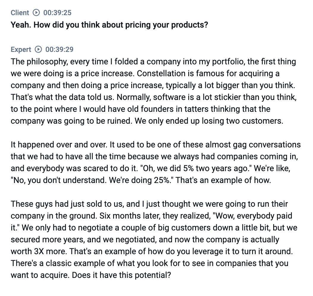 Common features in the acquired companies include their business-criticality to the customer, a small target market (TAM might be as little as five million dollars), and limited competition. Frequently mentioned customers in investor blogs include hospitals, district courts, the public sector in general, funeral homes, media, retail, etc.