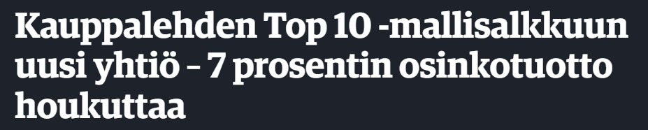 Nousupyrähdys osuu yks yhteen Kauppalehden artikkelin kanssa. Pienessä firmassa tällaiset uutiset voivat saada kovia nousuja aikaiseksi.