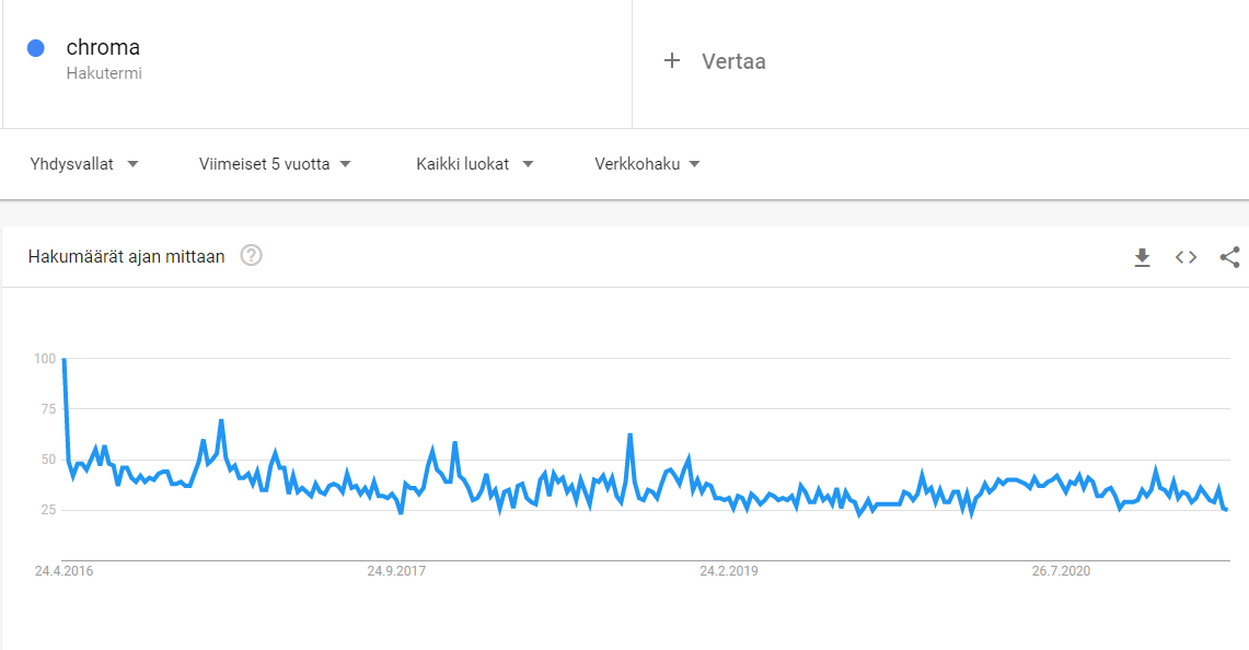 Her er Google Trends for søgevolumen for ovennævnte software i de sidste 5 år.