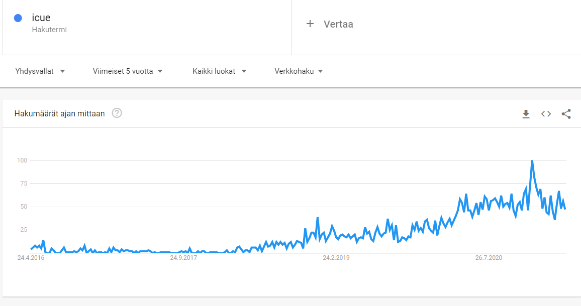 Corsair er med iCUE på en stigende trend i forhold til konkurrenterne. Den generelle “konsensus” på Reddit osv. er også, at iCUE er den bedste software. Dette fører igen til et stort antal brugere, hvilket fører til, at der f.eks. er flest RGB-profiler tilgængelige for Corsairs enheder, hvilket igen er et salgsargument for nye brugere, og cyklussen fortsætter.