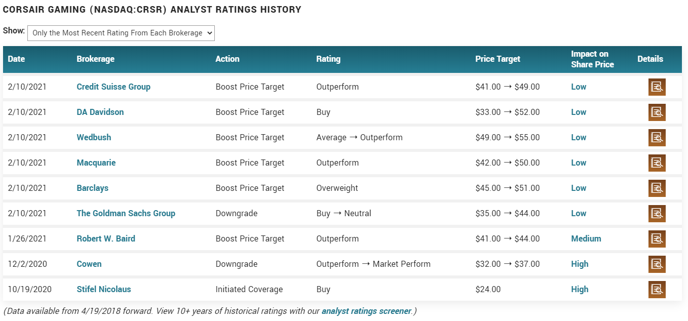 (kilde: https://www.marketbeat.com/stocks/NASDAQ/CRSR/price-target/)