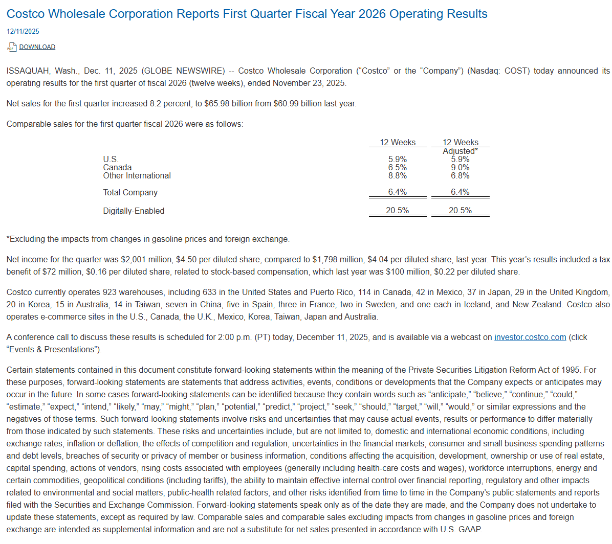 Oprindeligt fokuserede Costco primært kun på erhvervskunder, men hurtigt udvidede dens forretningsmodel også til forbrugersiden. I dag har virksomheden næsten tusind varehusbutikker i flere lande, men størstedelen af dens aktiviteter er stadig i Nordamerika. Costcos eget mærke Kirkland Signature har etableret sig som et kvalitetsprodukt til en overkommelig pris som et alternativ til mange mærker, eller det siges i hvert fald. ![]()