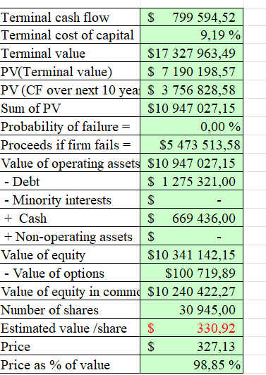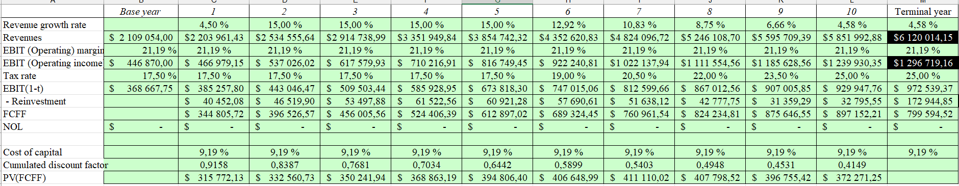 Osake tänään noin 8% laskussa. Koitin huvikseni tehdä yhtiön osalta DCF-laskelman, jossa se saavuttaa asettamansa ohjeistuksen ylälaidan, palaa 15% liikevaihdon kasvun uralle seuraaville vuosille, ja saavuttaa vuonna 2034 tämän hetkisen yhdysvaltain 10-vuoden treasury yieldin. DCF-mallissa on käytetty ainoastaan Aswath Damodaranilta saatavia materiaaleja ja malleja. Itse irtaannuin yhtiön osakkeesta q3 tuloksen yhteydessä, ja odotan mahdollista book-to-bill parantumista loppuvuonna. Historiassa yhtiön suorittaminen on ollut äärimmäisen vahvaa, ja alaa tukee terveydenhuollon megatrendi, sekä kasvava lääkekehityksen ulkoistaminen.