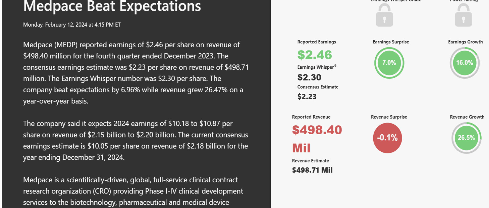 Dependence on clinical trial success: Medpace’s revenue largely depends on the successful completion of clinical trials by its clients. Delays, failures, or cancellations of trials could impact the company’s financial performance.