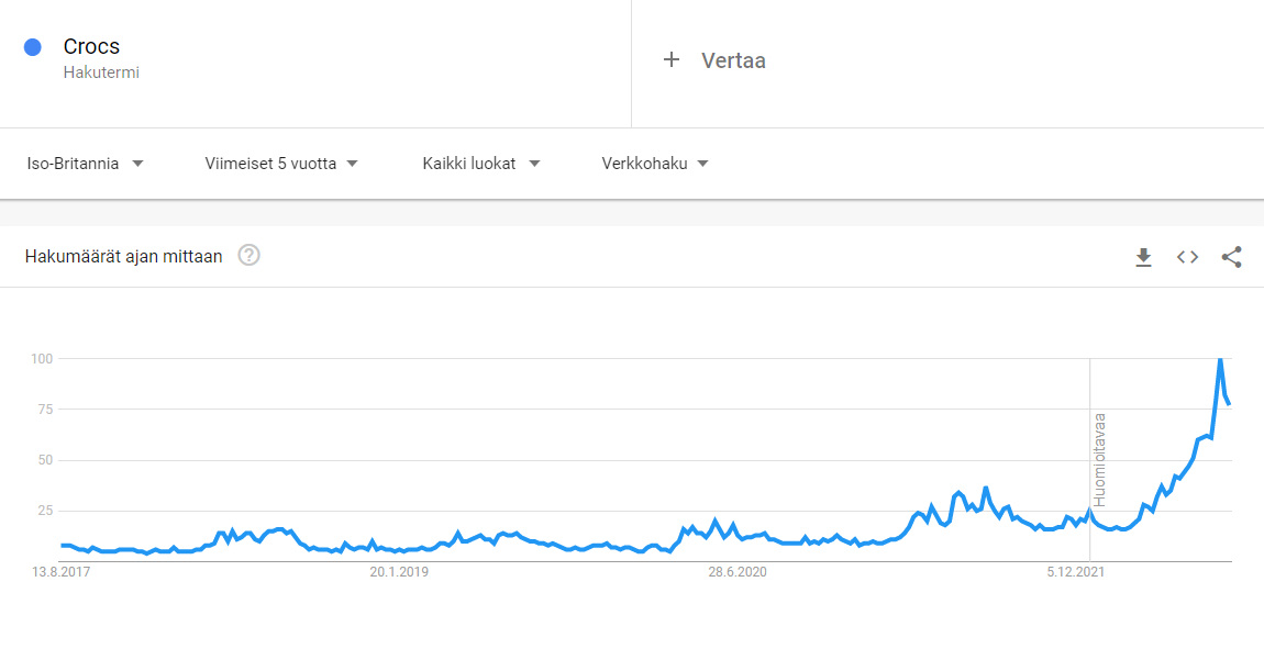 Linkki viimeisimpään presikseen maaliskuulta 2021 https://s22.q4cdn.com/133460125/files/doc_presentations/2021/03/Crocs_NDR-Presentation_vFF-2021.02.28.pdf