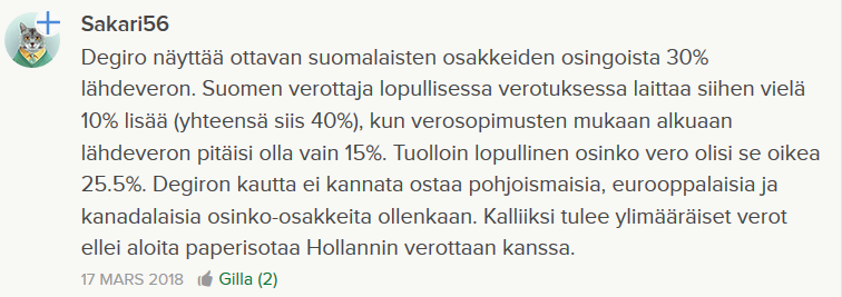 Käsittääkseni Degirolla menee verosopimuksen mukaan ainoastaan USA-yhtiöiden verotus, jos on muistanut klikkailla W-8BEN lomakkeen läpi.