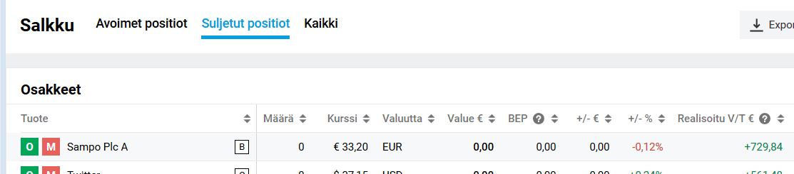 Aha, mulla on se Nyse listattu suosikeissa. Sen status on jotenkin muuttunut ilmeisesti ja näkyy mulla vielä.
