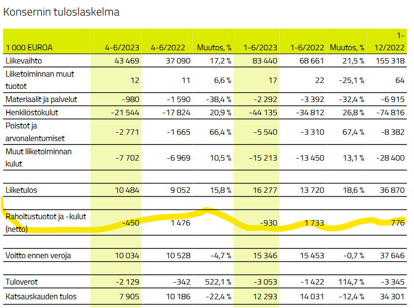 Ei päässyt DT ihan Juhan ennusteisiin. Liikevaihto 22,8M€ (Inderes 24,3M€) ja liikevoitto 1,5M€ (Inderes 2,5M€).