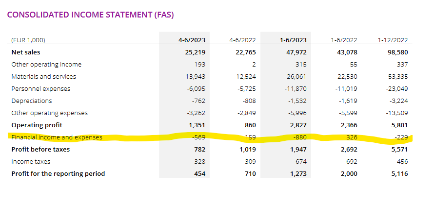 Oletan että näissä taustalla on valuuttakurssit eli pääosin Kiinan rimpulan (“renminbi”) heikentyminen. Ei kait sitä oikein muuten voisi olla isoja rahoituskuluja, kun kassa pullottaa rahaa eikä velkaa ole. Mutta pitää varmistaa vielä.