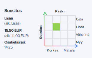 - Osakkeen arvostustaso houkutteleva kasvunäkymiin ja verrokkeihin nähden