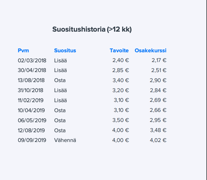 Ei minua kyllä hirveästi heidän näkemyksensä kiinnosta mikäli hinnoittelu muuten on pielessä. Yhtiö taitaa olla tulosperusteisesti yksi pörssin edullisimpia ja kasvaa kannattavasti kaksinumeroisin luvuin. Ei kovin tehokasta hinnoittelua