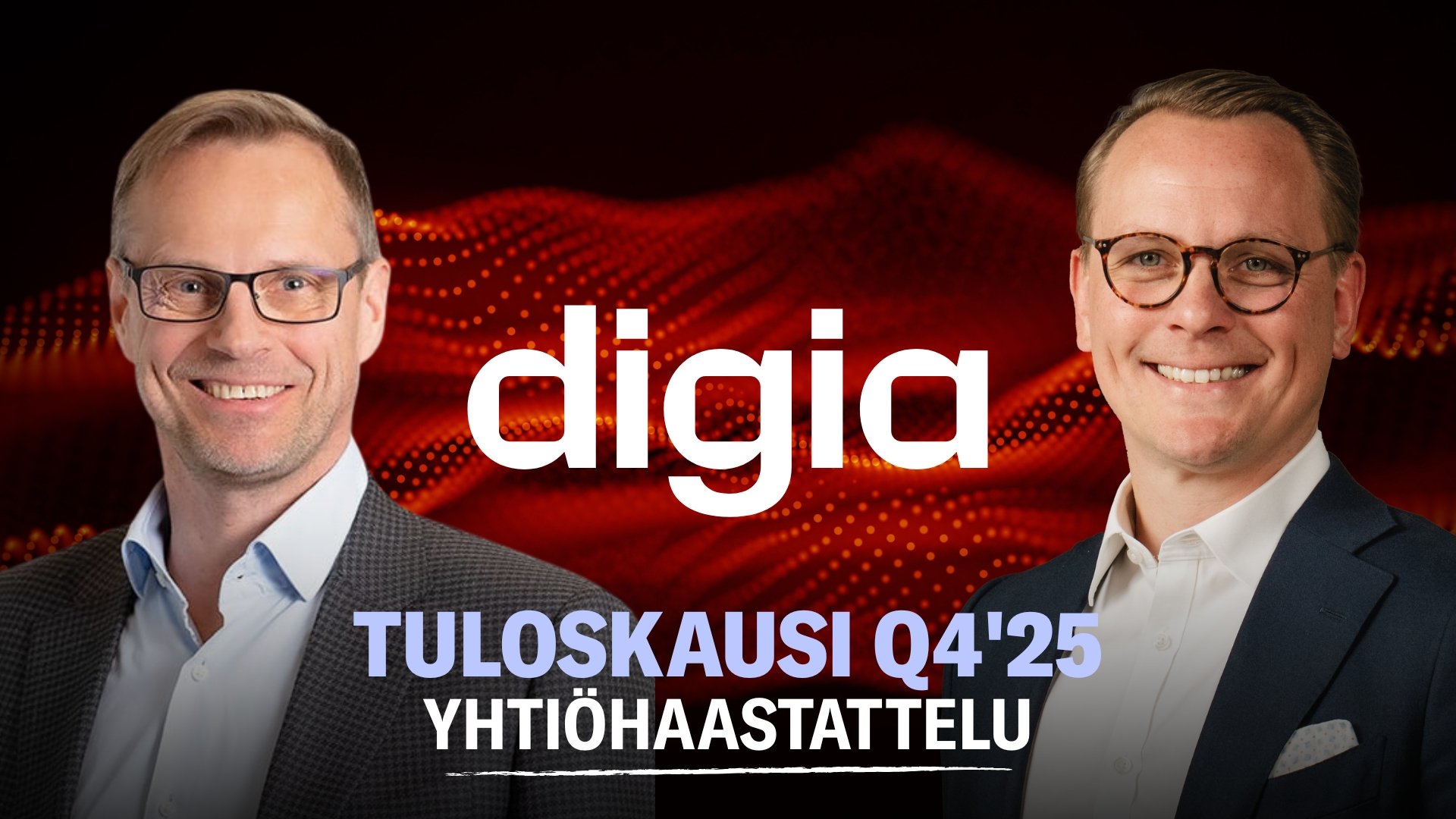Digia’s 2025 financial statements bulletin will be released on Thursday, 5 February at 15.00. Our CEO Timo Levoranta will present the results in a webcast at 18.00. You can follow the broadcast via the link below, and you can also submit questions to Timo during the presentation: Tilinpäätöstiedote 2025