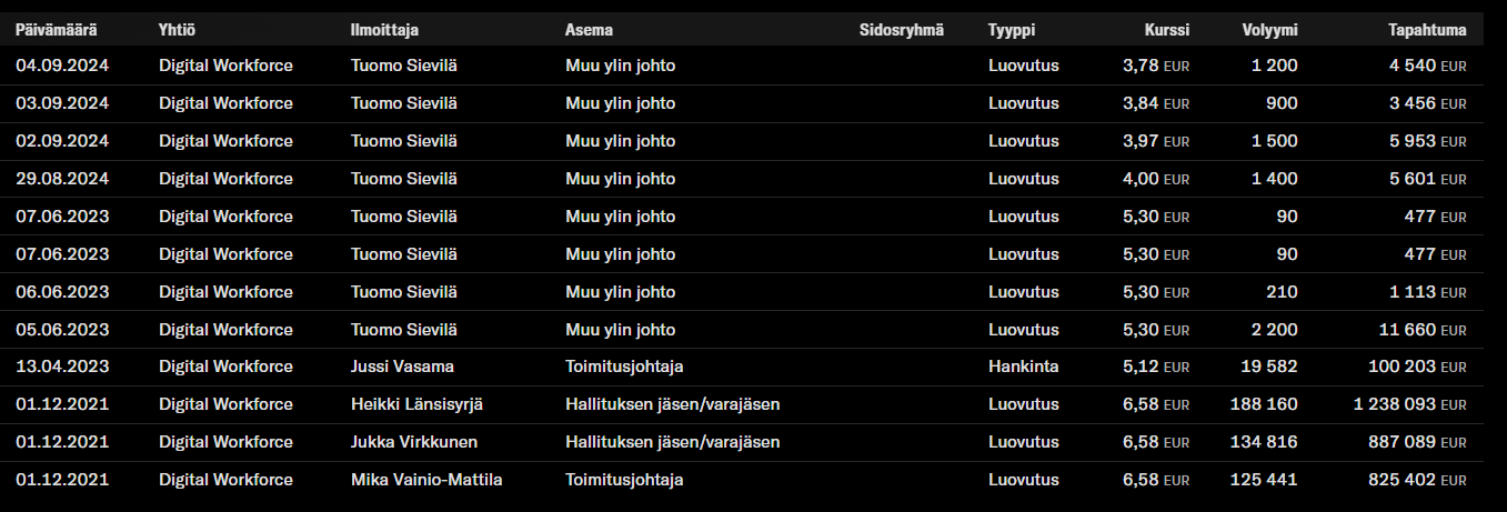 Tässä on sisäpiirin liikkeet, otin tähän vain normiostot ja -myynnit