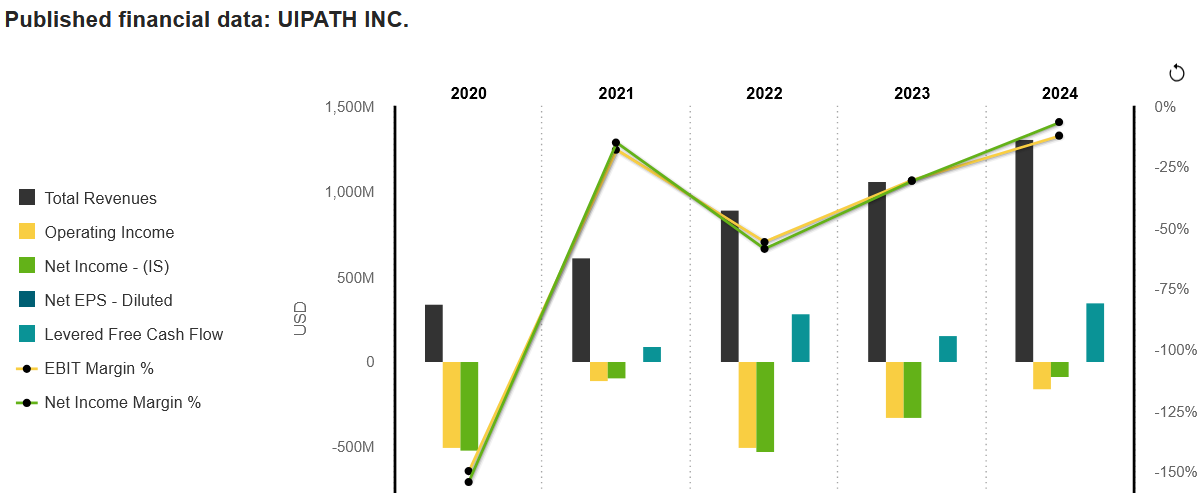 As a product manufacturer, UIPath scales better than DWF, but like DWF, it is on its way towards positive earnings growth, where valuations are rapidly decreasing.