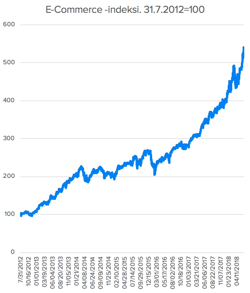 Katsoen miten mm. Amazonin, Netflixin & co. sisältävän e-commerce indeksin arvo on kehittynyt näyttää markkina hinnoittelevan jotain uutta maailmanjärjestystä sisään…