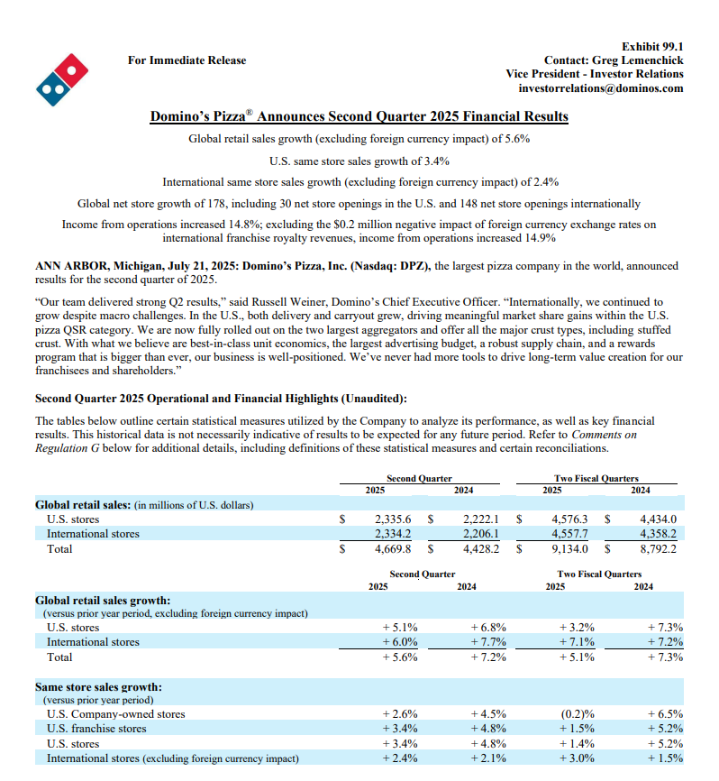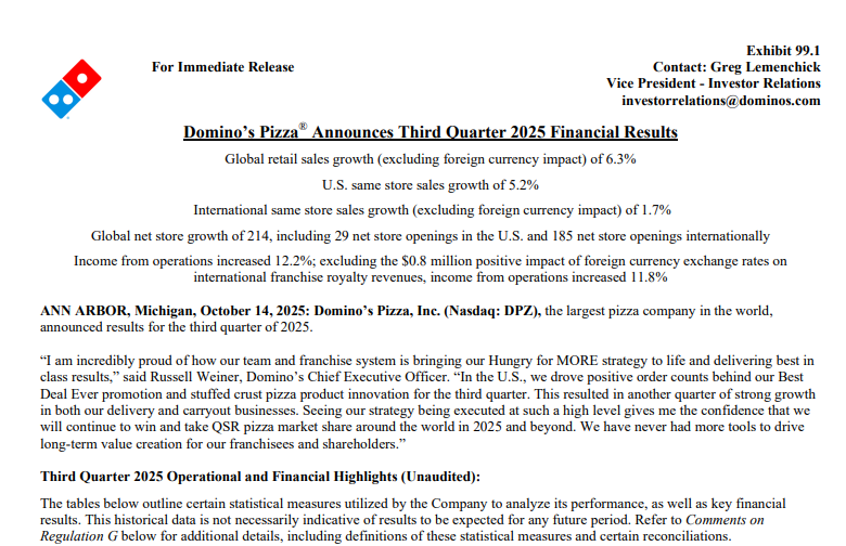 Domino’s jatkaa strategista panostustaan kasvamiseen, vaikka taloudelliset haasteet ja epävarmuus Yhdysvalloissa vaikuttavatkin kuluttajien käyttäytymiseen. Yhtiö ilmoitti myös osingosta ja osakkeiden takaisinostoista.