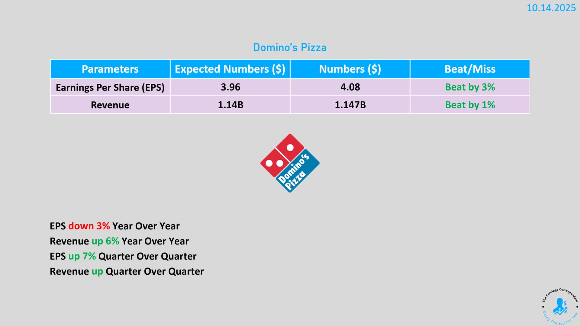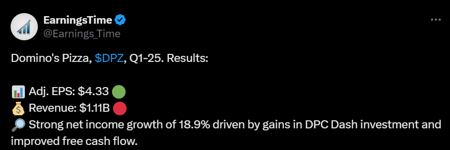 Domino’s Pizza ylitti tulosennusteet EPSis, mutta jäi hieman liikevaihtoennusteista ensimmäisel kvartaalil.